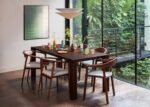 The Angolo dining table, exclusively crafted for Heal’s by Says Who, brings contemporary Scandinavian design to your dining space. Taking inspiration from its name, the Italian word for ‘angle’, the table features a chamfered walnut top that appears effortlessly lightweight. Solid walnut legs with distinctive triangular joints showcase expert craftsmanship, blending strength with elegance. This versatile table makes a stylish centrepiece for both intimate dinners and larger gatherings.
