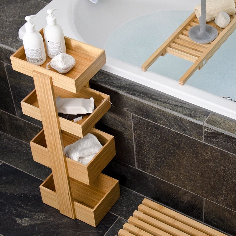 Handy bathroom storage crafted from bamboo