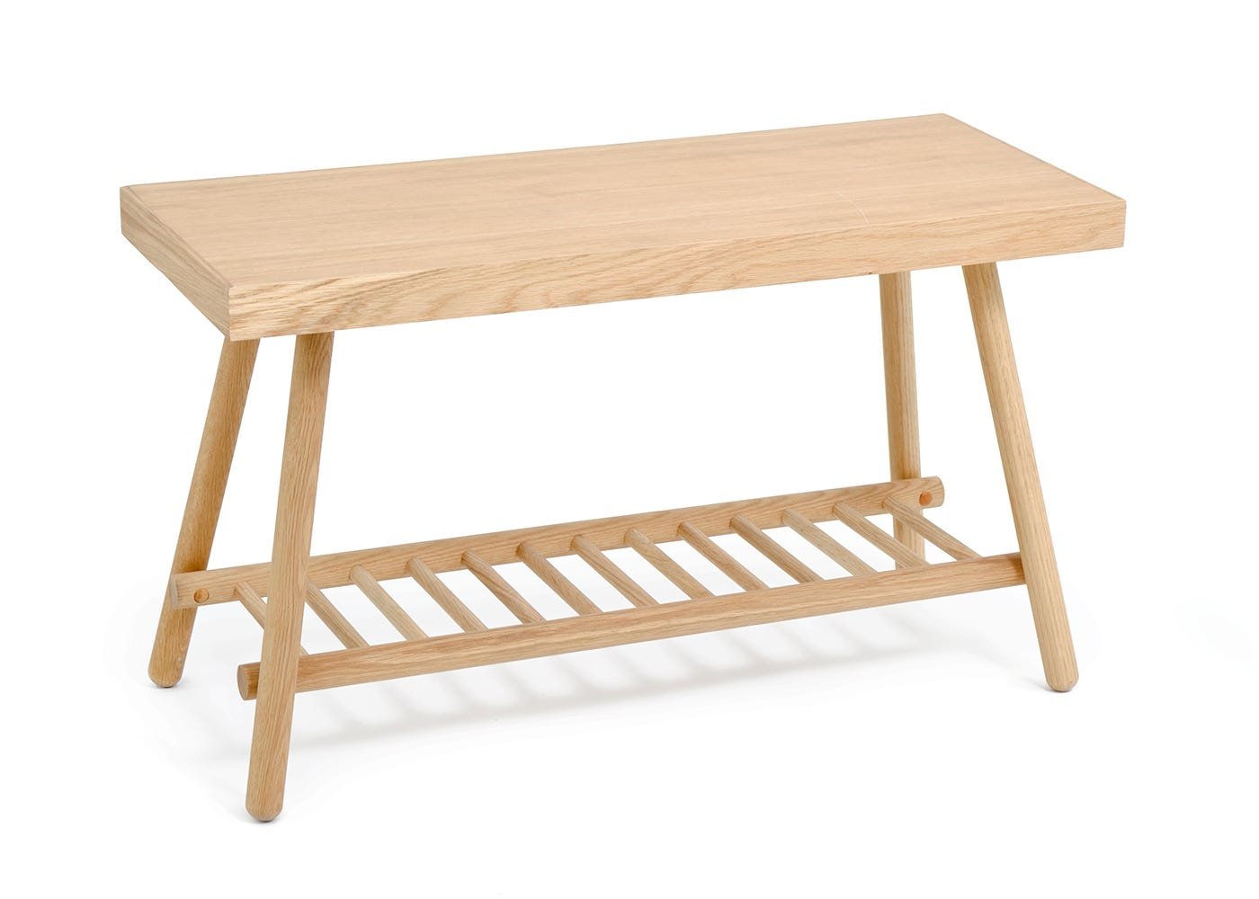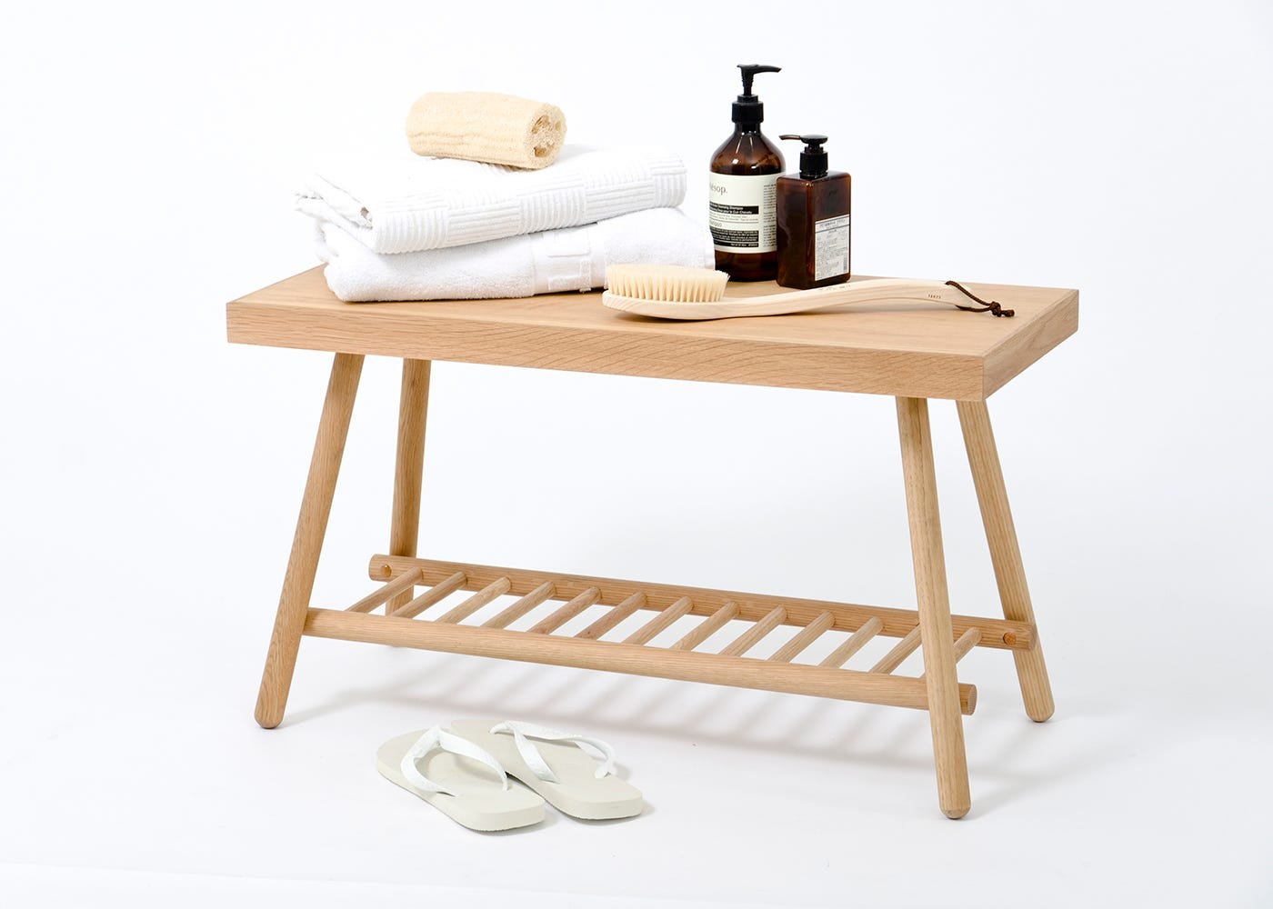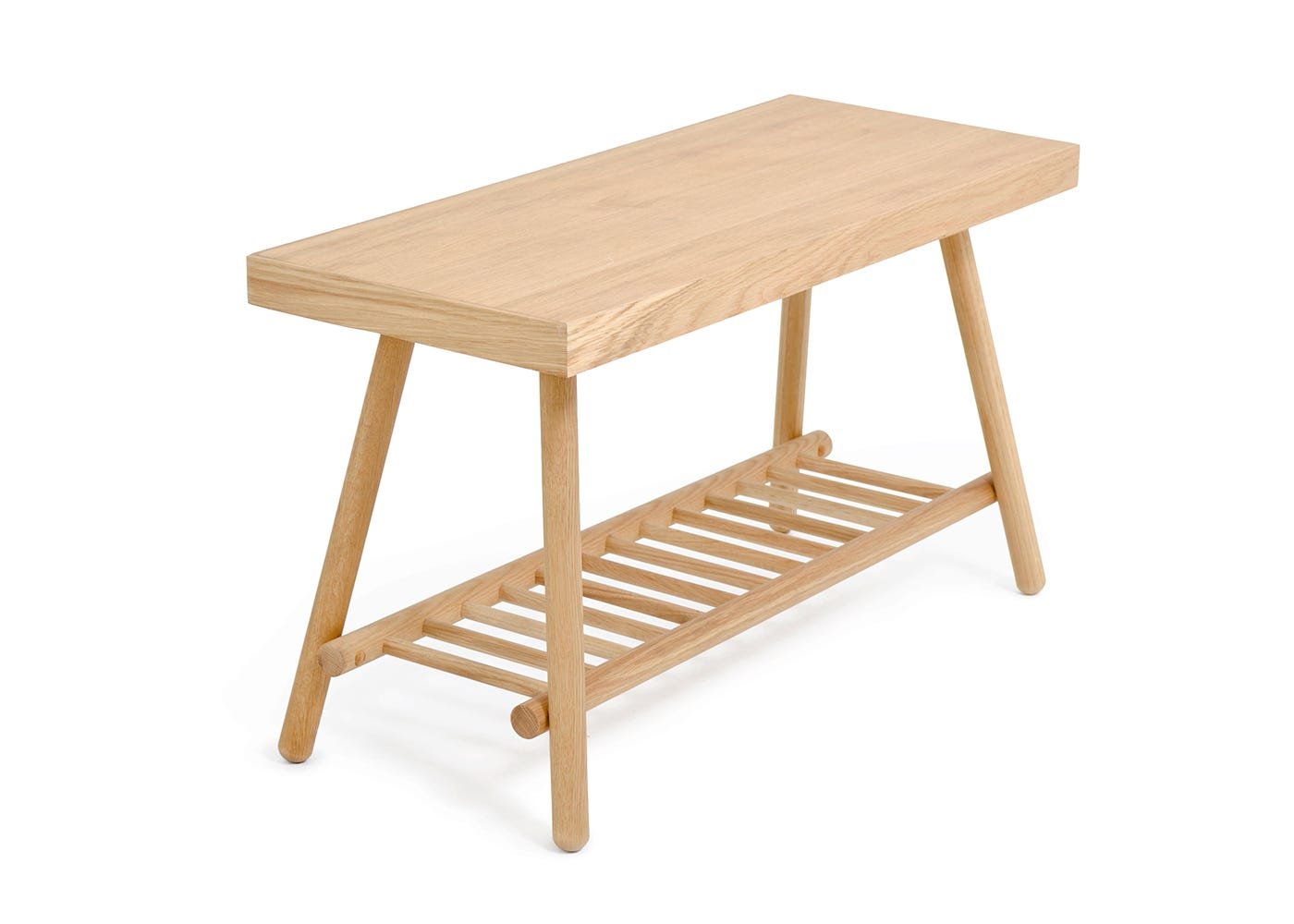 Bench 75 in a hallway is a place to take off shoes, put on boots, where outdoors and indoors meet. The storage shelf stores up to three pairs of shoes comfortably and there’s room underneath for more. Alternatively use it at the end of a bed and keep blankets and pillows on the storage shelf, or as a side table storing magazines and books below. Where space is limited this compact design slots in easily.