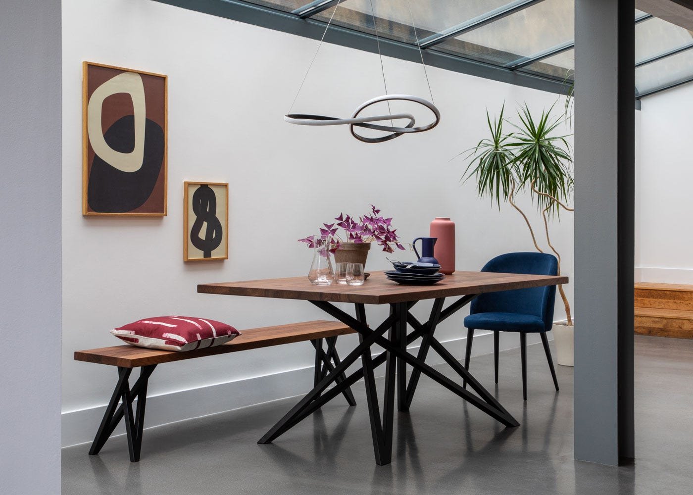 The Vienna Dining Table is part of the Heal’s Bespoke Dining collection, crafted to your exact requirements. Defined by its bold, angular metal pedestal, this contemporary design offers a striking focal point while keeping the space beneath clear for comfortable seating, ideal for smaller rooms. Choose your preferred size, wood, finish and edge profile to create a table that’s uniquely yours. Made from solid wood, each piece showcases natural grain, knots and character built to last a lifetime.