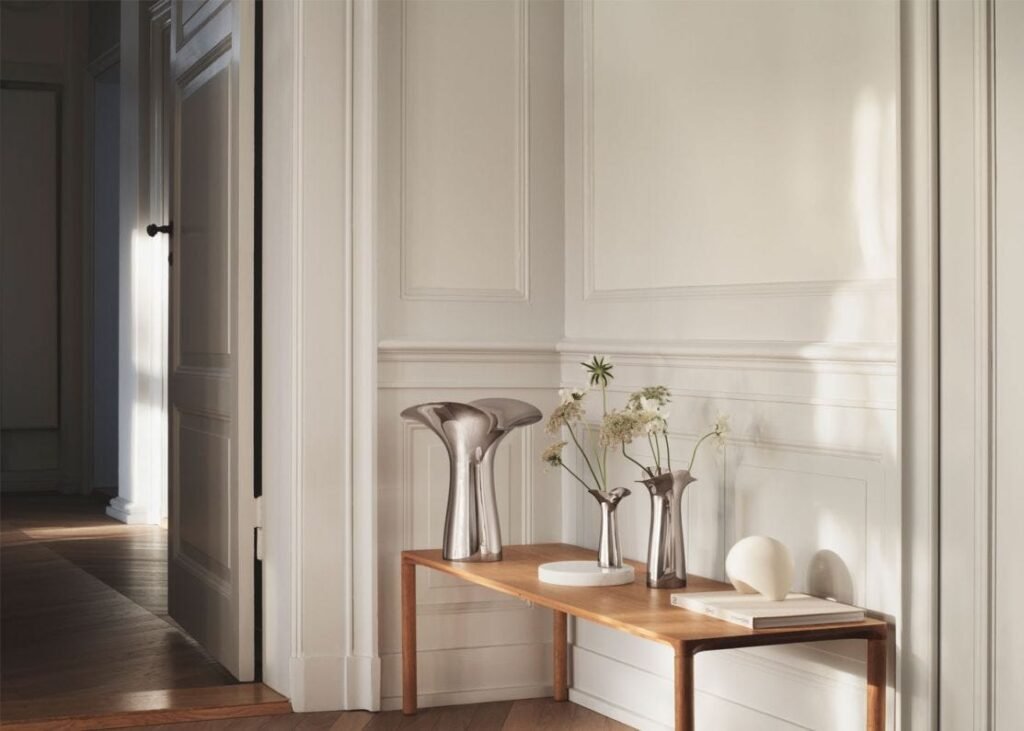 Danish designer Helle Damkjær created this Bloom Botanica Vase for Georg Jensen after being inspired by spring’s new growth. She meticulously sculpted this vase using clay and then skilfully crafted from stainless steel with a refined, polished finish typical of Georg Jensen.