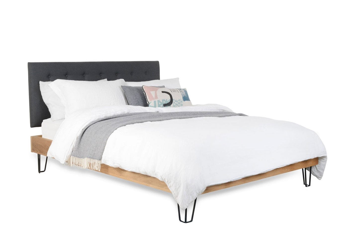 Rob Scarlett’s hugely popular Brunel range sets industrial style against mid-century Scandinavian design to create pieces made for modern living. The Brunel Bed features a solid oak frame and headboard that is tailored in smokey grey fabric, complete with button cushion detail.
