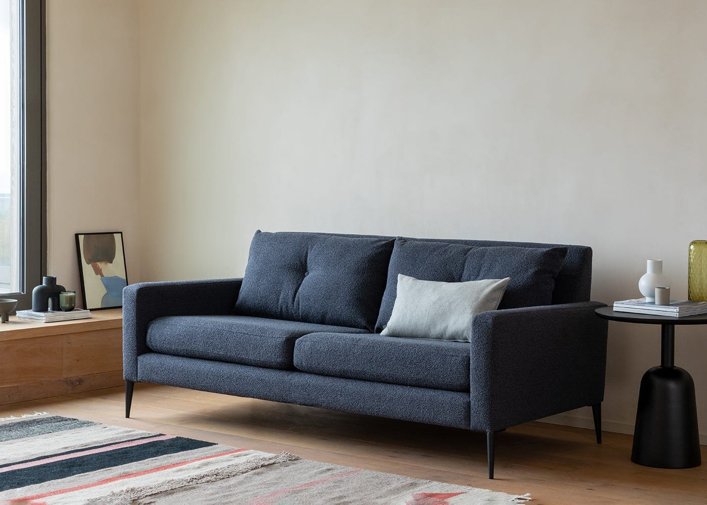Supportive foam and fibre cushions you can sink into, sleek aluminium feet for a sharp finish, and removable covers that make cleaning a breeze.