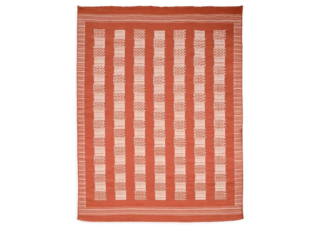 Replicating the look of worn, antique rugs, the Canevas produces its classical floral design from a grid of woven fibres. By enlarging the classic cross stitch technique, this rug creates a pixelated pattern from perforated soft felt interwoven with brightly coloured thread.
