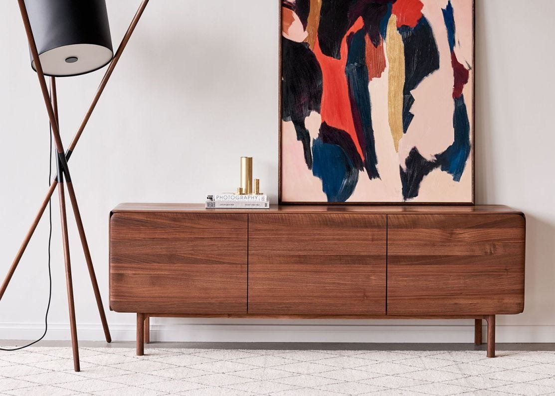 Inconspicuous edges to the doors keep the lines of the sideboard uninterrupted.