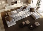Its design, much like those age-old streets, boasts irregular yet captivating patterns that evoke a sense of timeless beauty and wanderlust. Its modular structure reflects a series of elements that can be customised to fit your unique living space. Whether you need a cosy corner for intimate conversations or a spacious seating arrangement for entertaining guests, the Cobble Sofa adapts to your needs with ease. Its flexibility ensures that it remains as practical as it is stylish, making it an ideal choice for modern homes where versatility is key. Whether dressed in a simple, classic fabric that whispers elegance or adorned with a vibrant, textured fabric that exudes personality, each variation of the Cobble Sofa tells a distinct tale of comfort and sophistication.