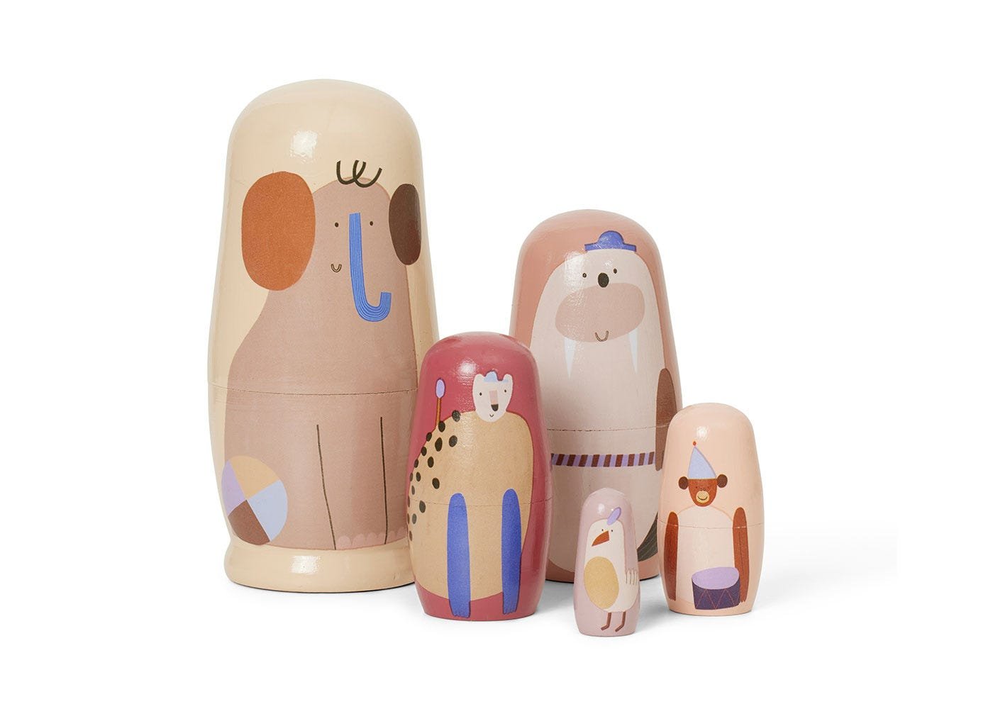 Invite an endearing quality into the kids’ room with the Critter Nesting Dolls. These charmingly playful wooden animals nest inside one another, presenting a modern interpretation of the classic matryoshka dolls. Each friendly critter is made from FSC™-certified wood and decorated with muted colours, making them ideal for both playtime and for displaying on your little one’s shelf.