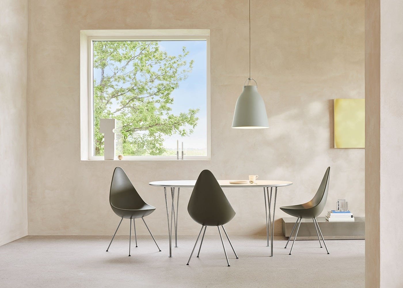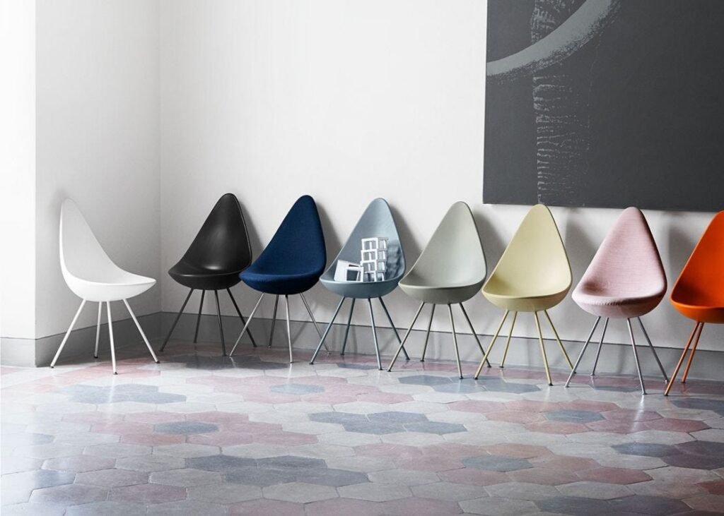 Originally designed by Arne Jacobsen for Copenhagen’s SAS Royal Hotel in 1958, the Drop™ Chair is both iconic and inviting. Its distinctive teardrop-shaped backrest was inspired by the feeling of an embrace, offering freedom of movement and lasting comfort. Relaunched by Fritz Hansen in 2014, the design is now available in contemporary tones with matching powder-coated or chrome legs, creating a fresh yet timeless expression that complements modern interiors.
