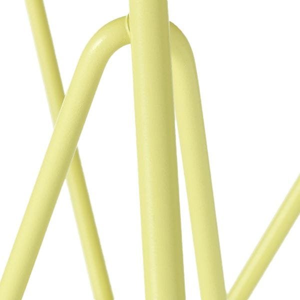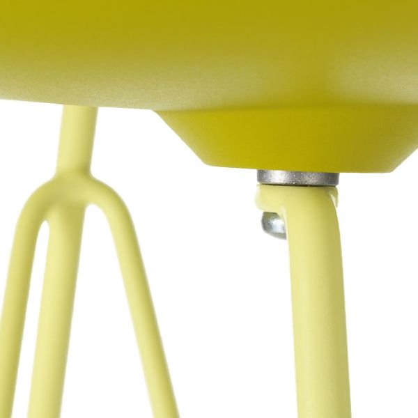 Shaped metal legs create a sturdy base to the chair, in vibrant colours.