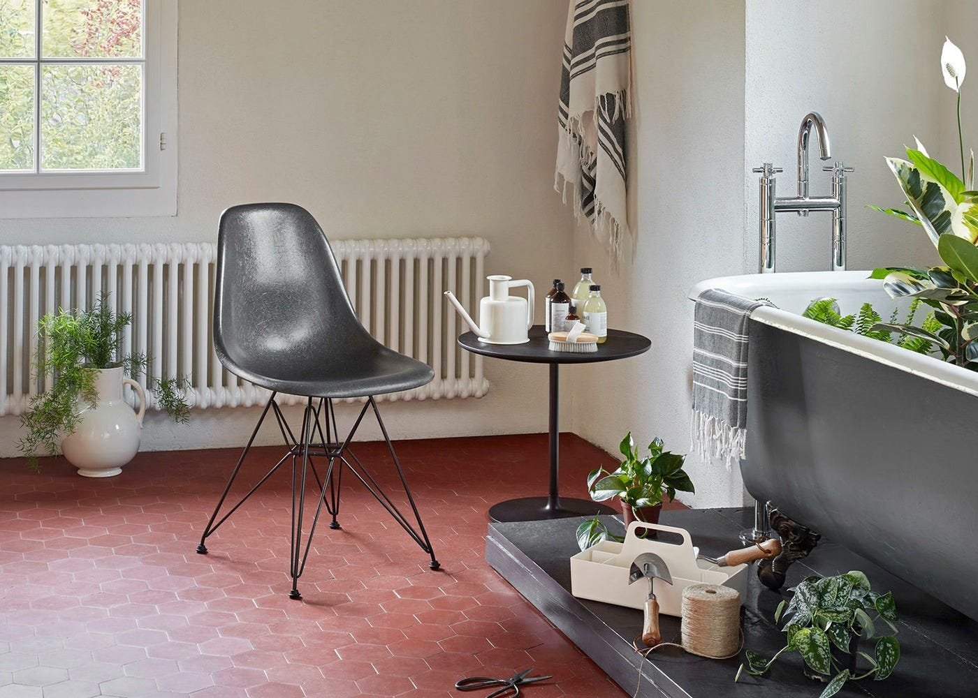 The Fiberglass Chairs were launched on the market in 1950, introducing a new furniture typology that has since become widespread: the multifunctional chair whose shell can be combined with a variety of bases to serve different purposes. In response to the enormous popularity of the chair, the choice of bases and colours was subsequently expanded. Over the course of the following decade, the Fiberglass Chairs became one of the best known furniture designs of the twentieth century.