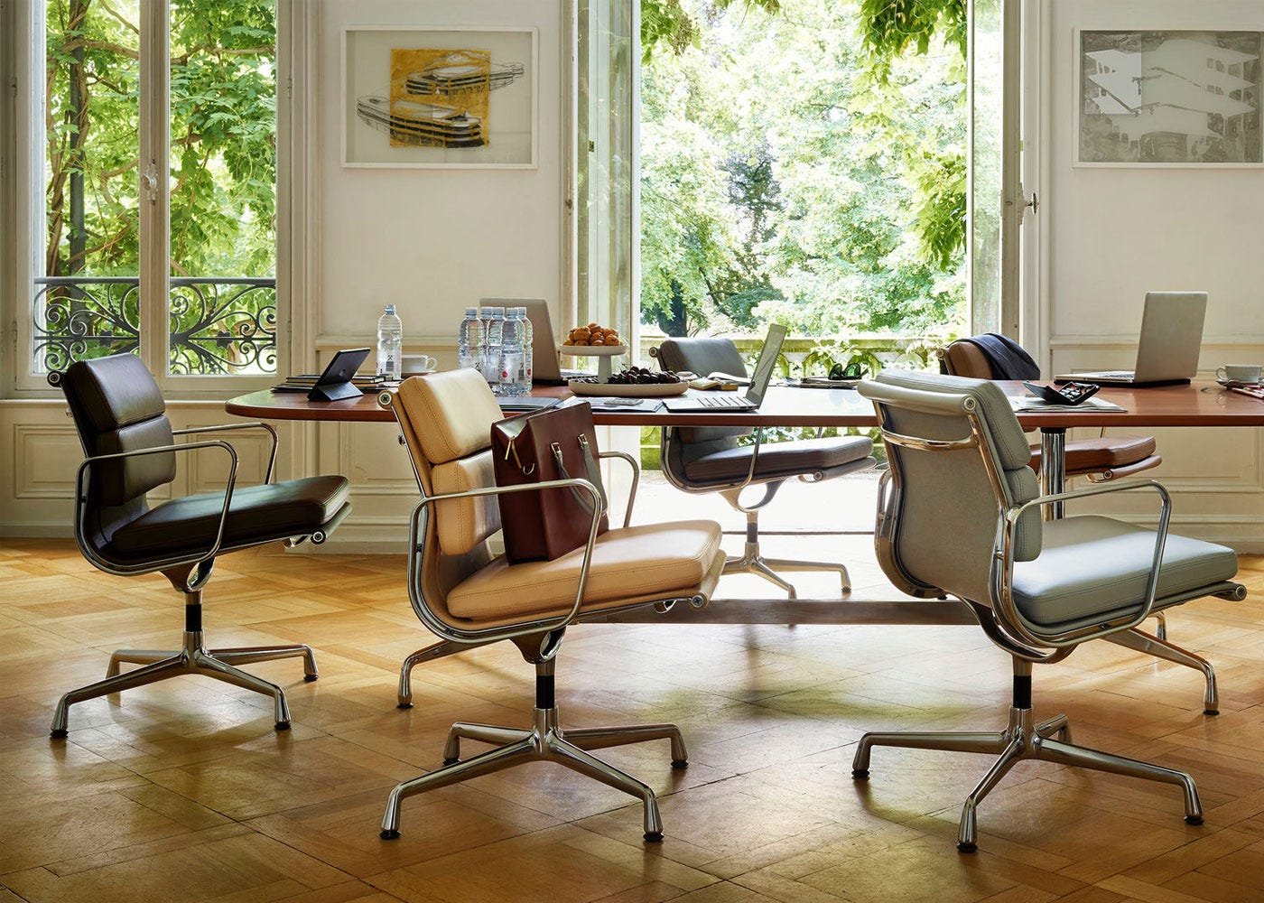 Building on the success of their iconic range of office furniture, for the Soft Pad Charles and Ray Eames introduced comfortable cushioning to their e…