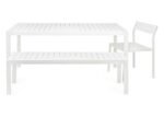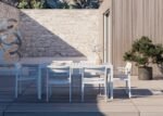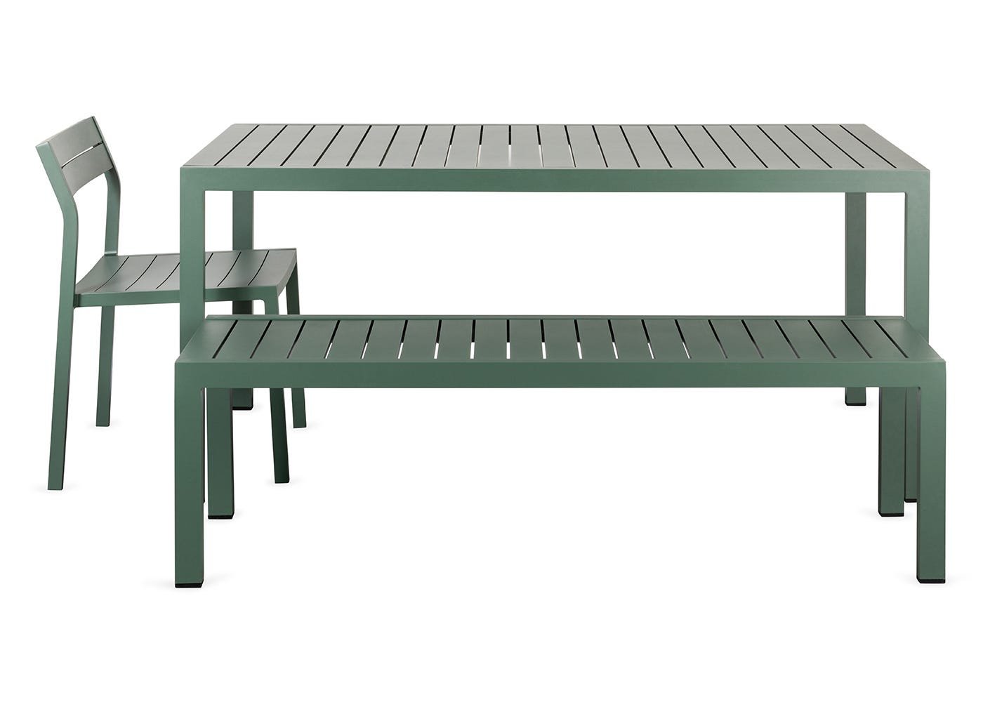 Two Eos Outdoor Benches can fit neatly under the table when not in use.