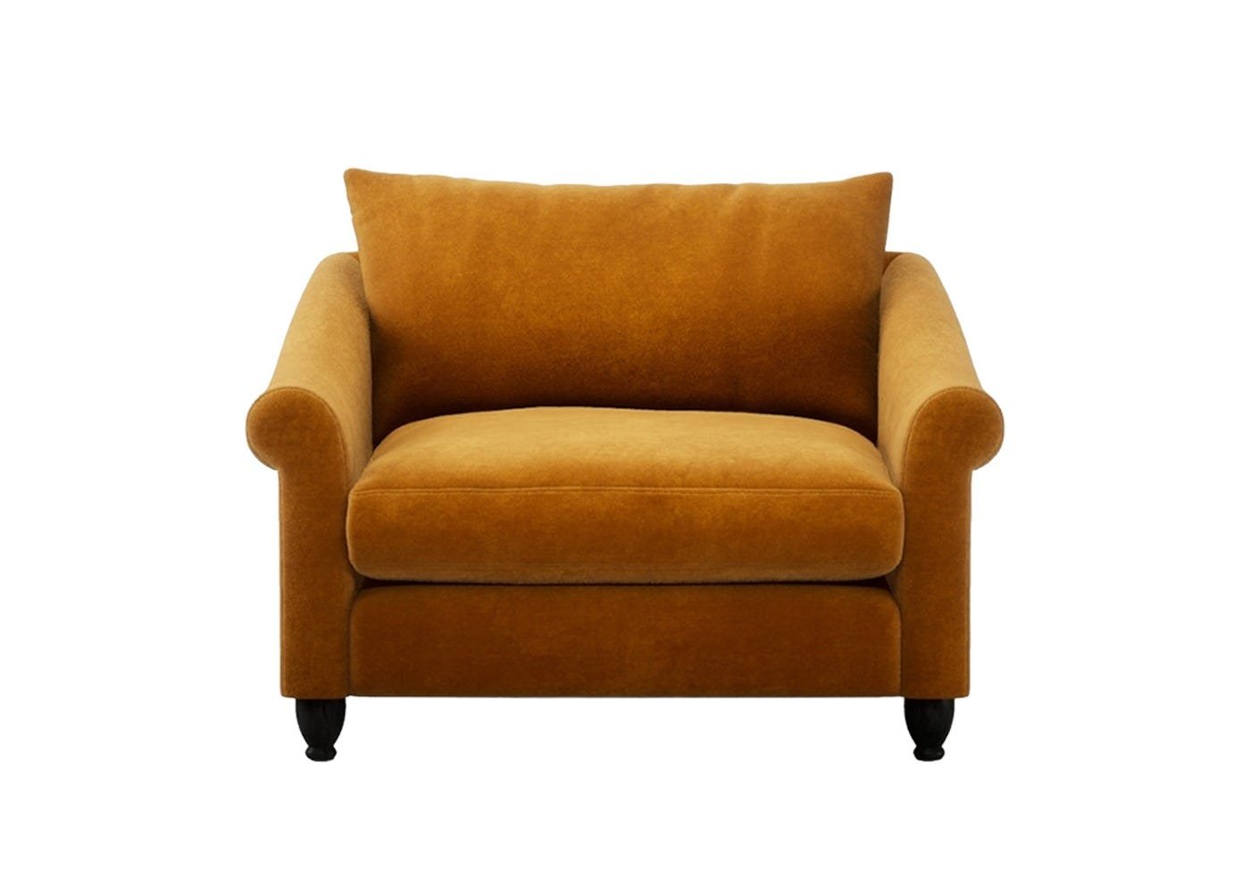 Recreating a classic British design in contemporary materials, this loveseat is part of the Heal’s exclusive Devon collection. With its scroll-armed profile, high cushioned seat back, and tapered legs, this loveseat is a true luxury to sink into. Its feather-filled cushions are available in a range of Heal’s fabrics and colours, to perfectly match your style and interior design. Pair alongside a Devon sofa for a complete contemporary look.