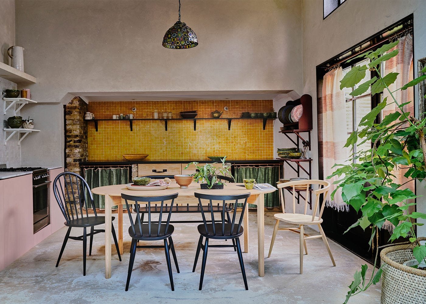 Traditional spindle backrest is formed from a row of individual ash poles, each turned to create a soft feel