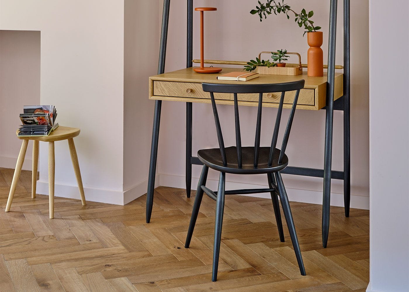 The Heritage collection of signature pieces were inspired by the ercol 333 chair designed and created by ercol’s founder Lucian R Ercolani. The Heritage collection features the character and handwriting that is synonymous with ercol’s mid-century identity and are designed to sit in any room across the home with any ercol collection. The Heritage chair feature ercol’s iconic tapering legs and elegant spindle back combined with a smooth curved top rail curved to create an elegant profile. The solid oak seat is sculptured to provide a comfortable sit at a dining table or anywhere in the home. Available in two modern finishes dead matt lacquer or striking black.