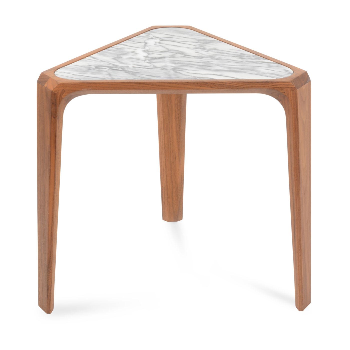 Expertly crafted from solid hardwood in oak or walnut, the table is finished with a marble top that is removable for ease of transport and cleaning.