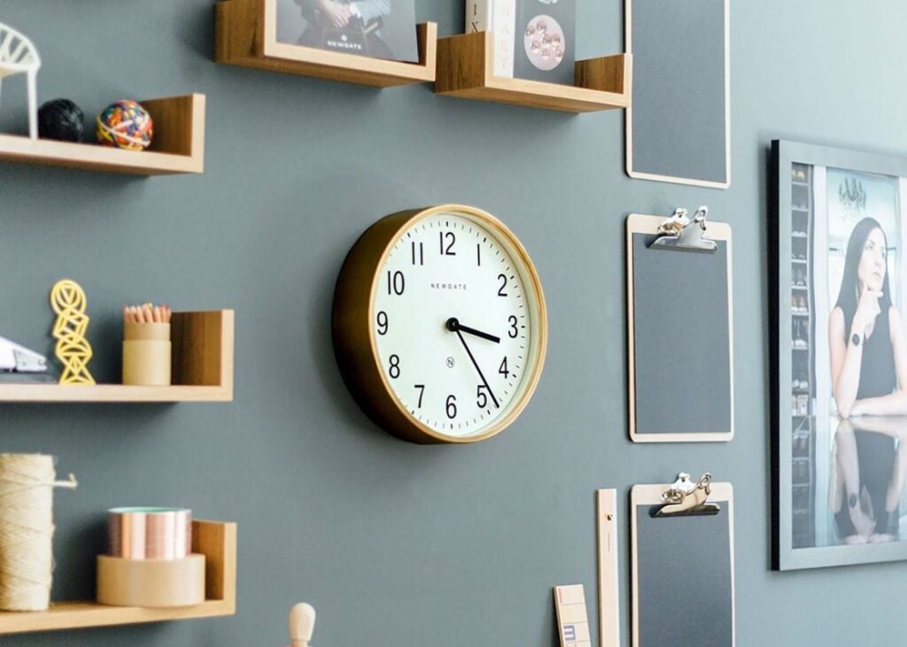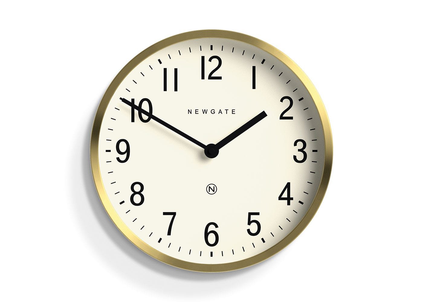 The Master Edwards wall clock features a solid circular metal case which is straight cut for a clean and graphic line. The deep brass case holds a bold modernist dial and a flat glass lens.