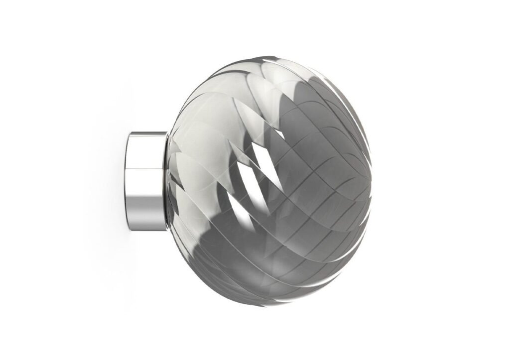 Once lit, the shade becomes translucent, boasts a mirror finish when not in use.