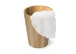 Individually assembled by hand, eighteen blocks of solid American white oak are laminated to form the conical shape. A squared top and bottom edge cut a contemporary look. Perfect for use in a bathroom, bedroom or office. The surface can be easily cleaned inside and out with a soft damp cloth and soapy solution.