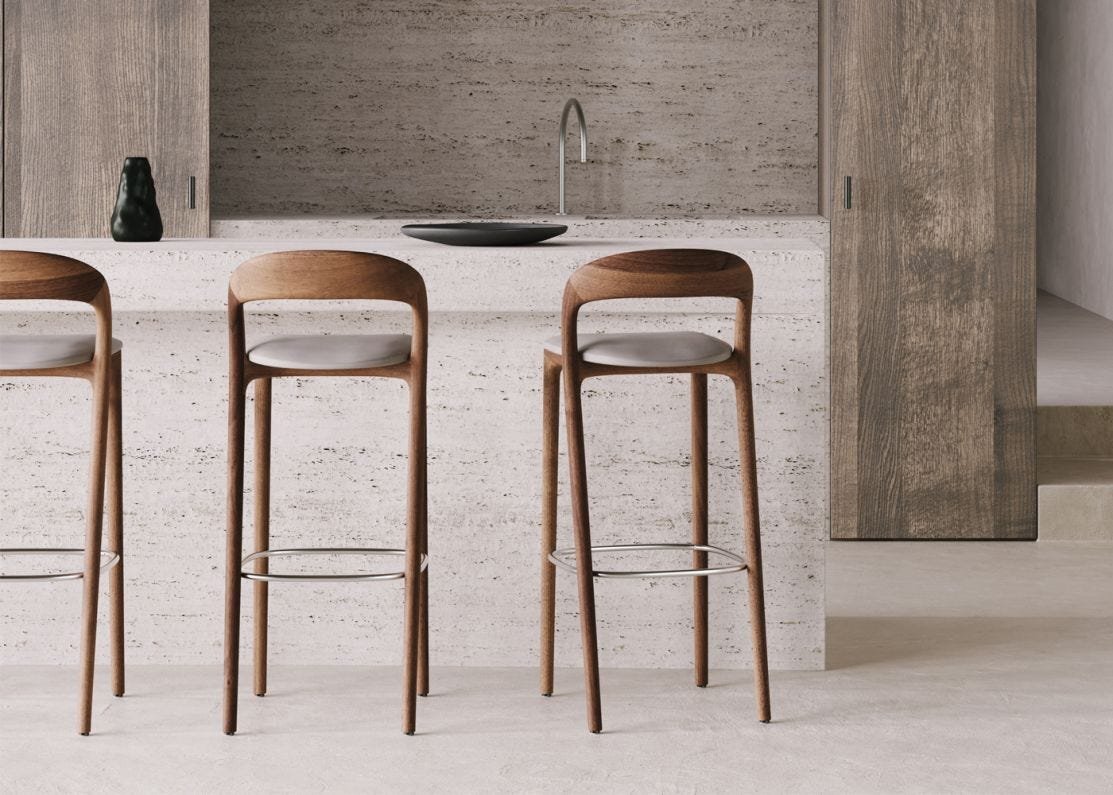 The Neva Light Counter Stool designed by Regular Company for Artisan is a minimalist approach to maximum degree, with a visual lightness accompanying the lightness of the body. Its feature backrest, ergonomically bent, softly transitions into the legs, creating a compact, firm support, visually highlighted by the expressive ongoing line. A simple seat completes the piece, underlining the alluring curves of the line it leans on.