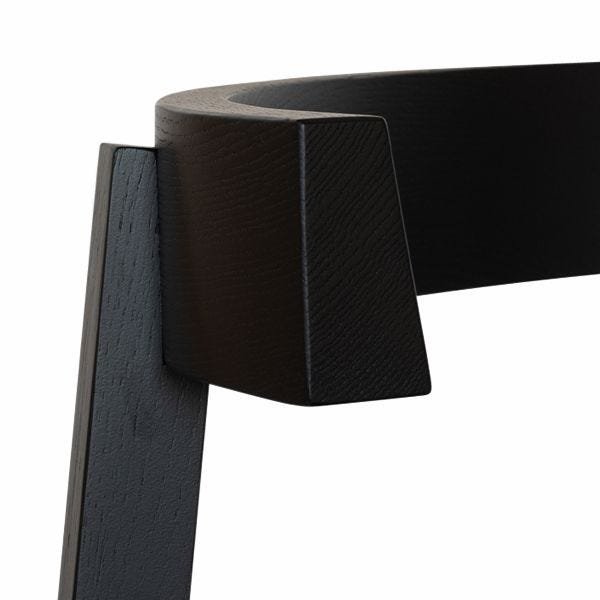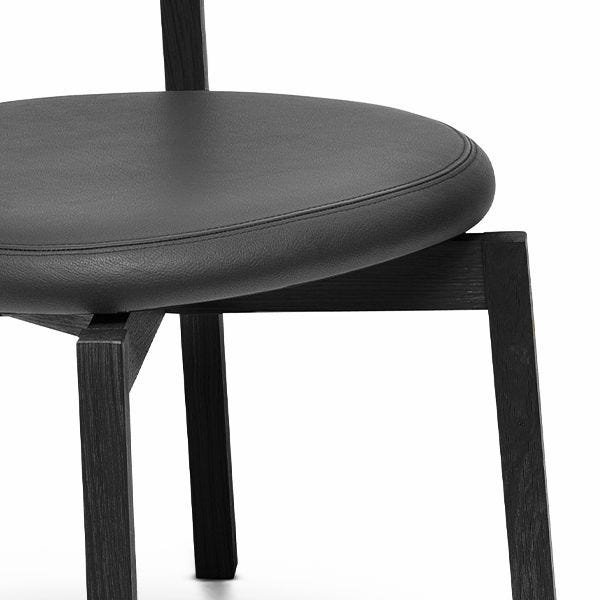 A soft seat contrasts with the angularity of the chair’s contemporary shape.