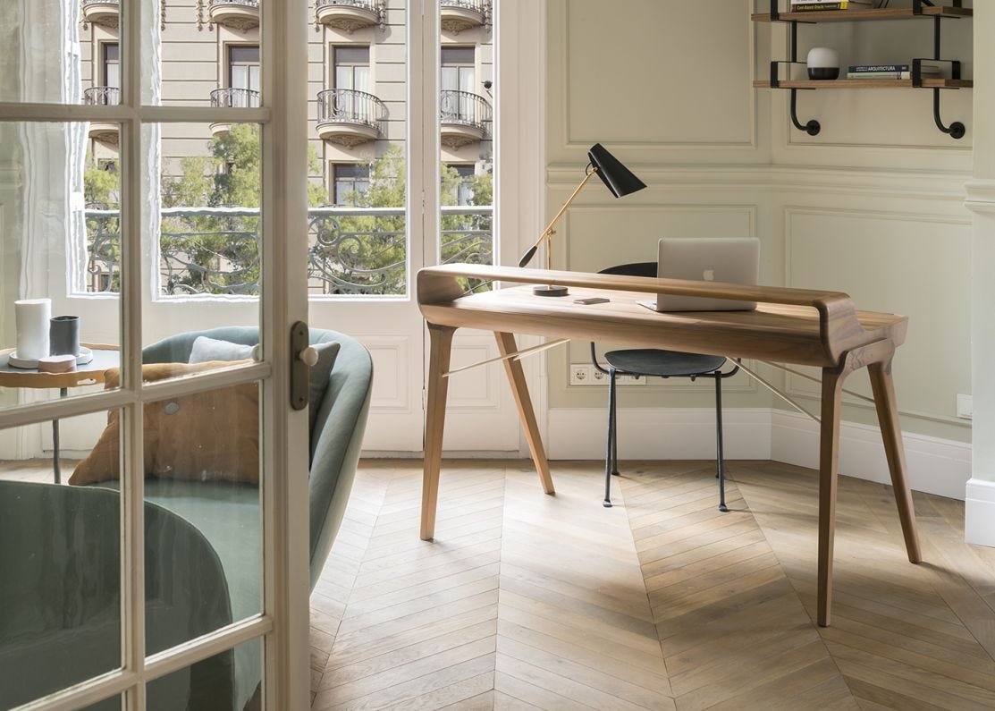 Crafted by award-winning Regular Company, the Picard Desk combines solid wood elegance with functional clarity. Its soft-edged form conceals slim drawers beneath a spacious surface, with a raised rear shelf for added organisation. Strong yet graceful legs maximise legroom, creating a workspace that feels just as good as it looks.