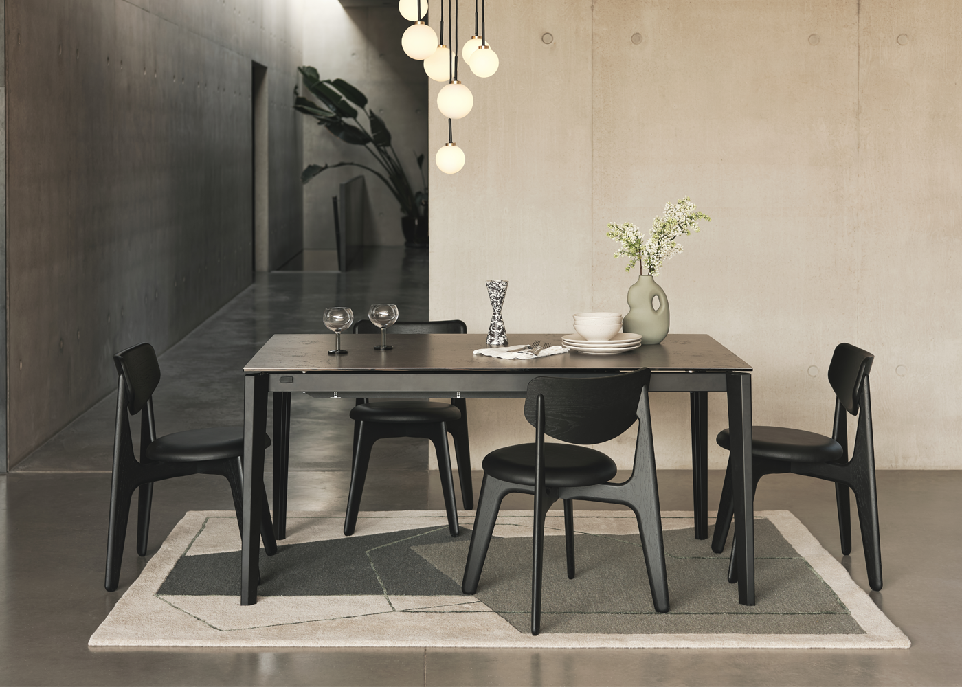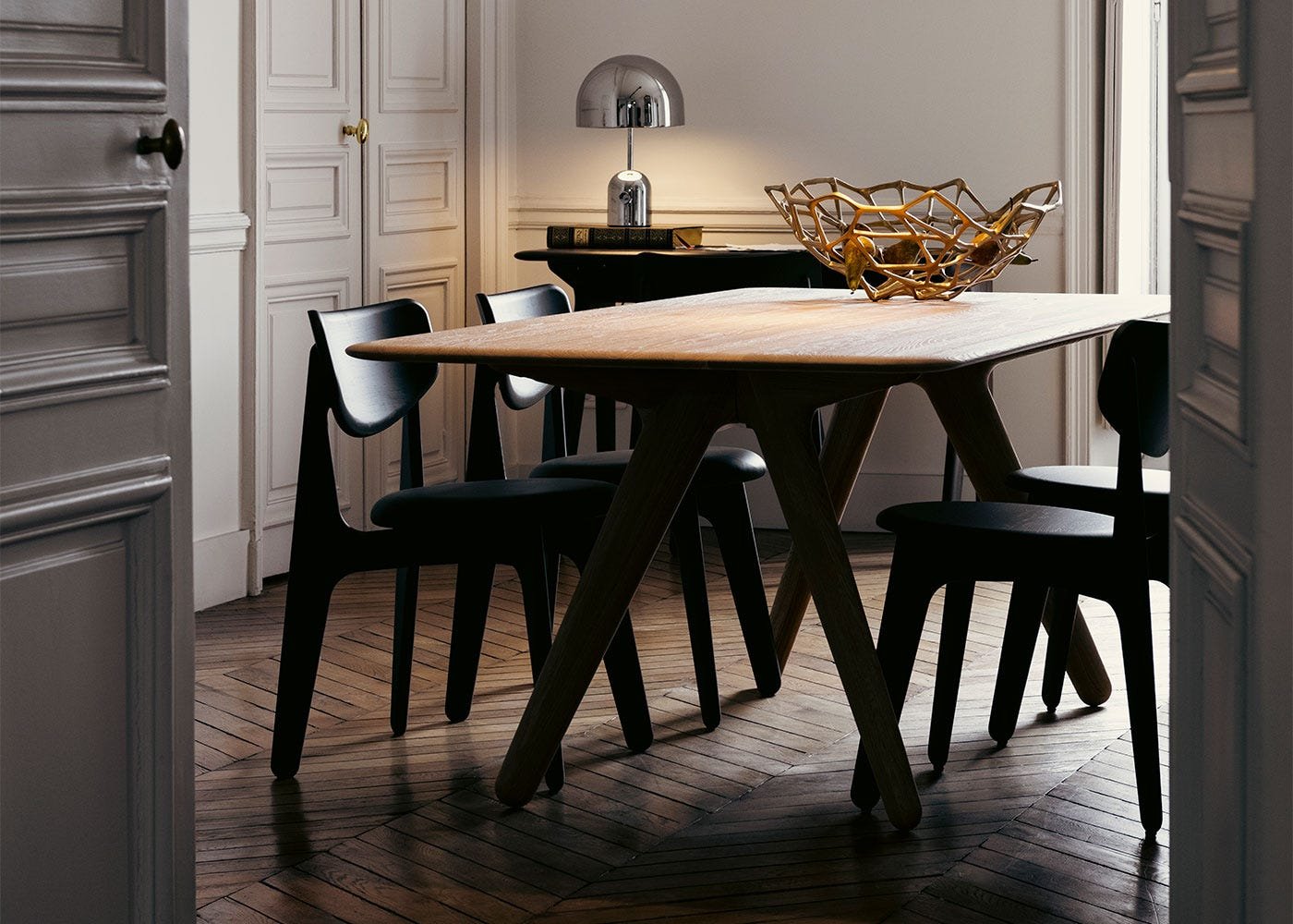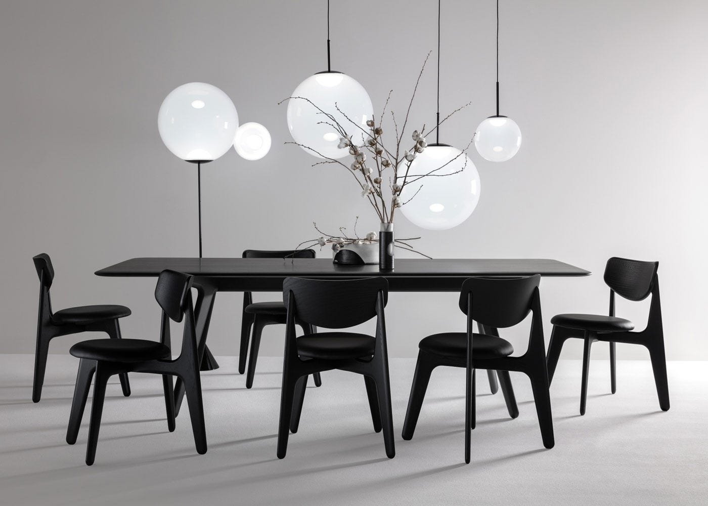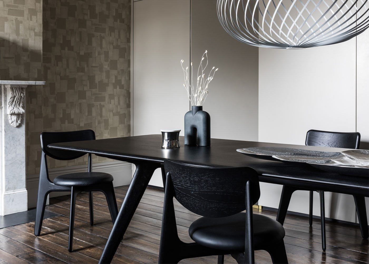 Prestigious design house Tom Dixon was inspired to create the black upholstered Slab Chair to accompany the Slab Dining Table.