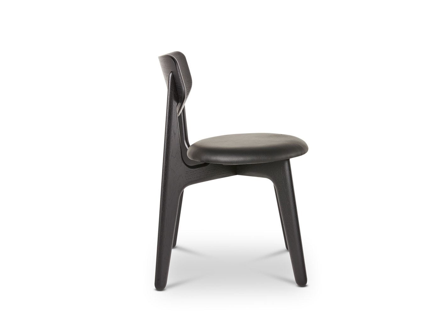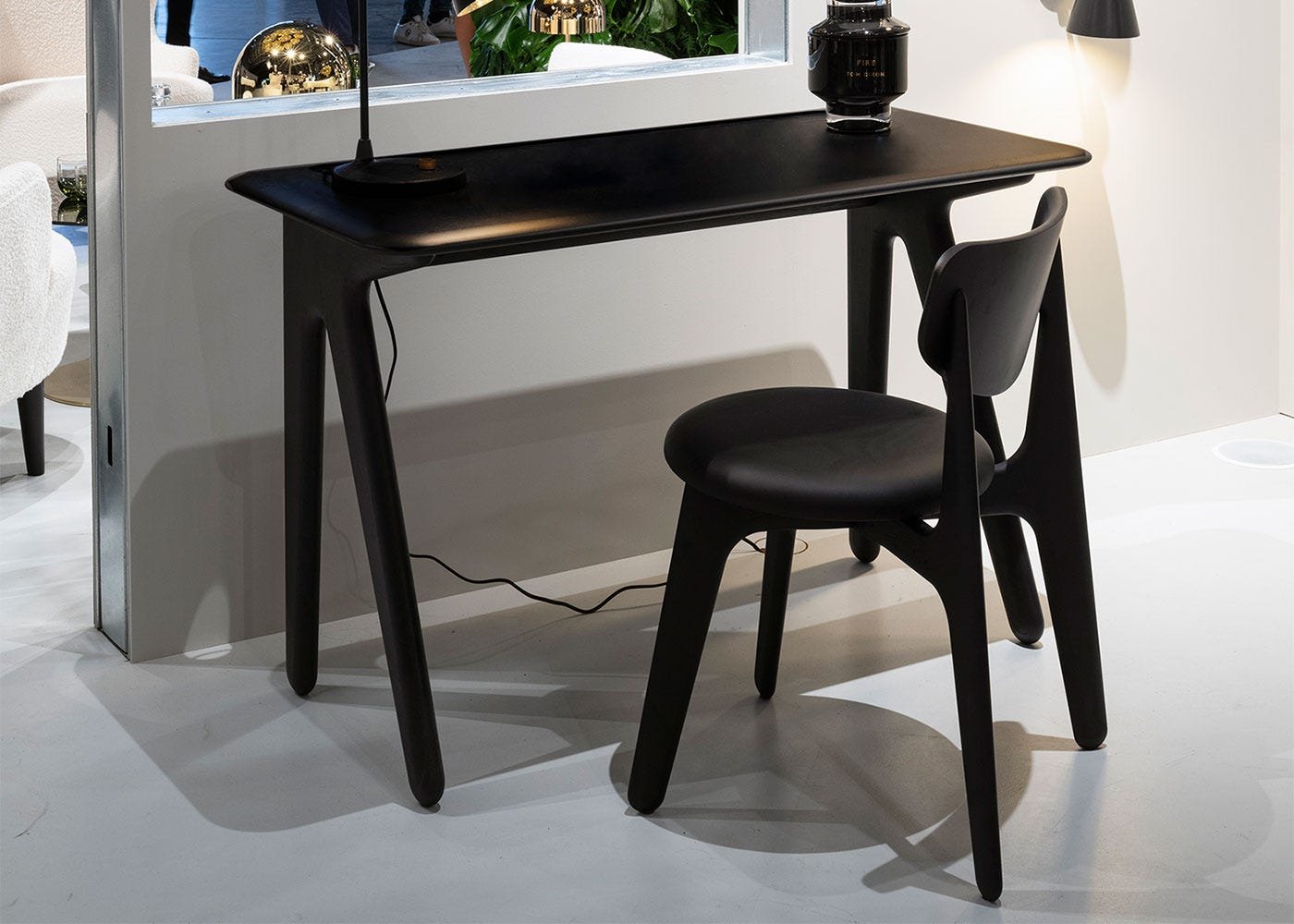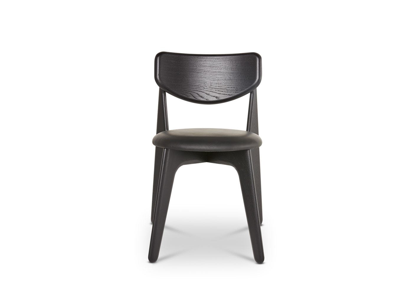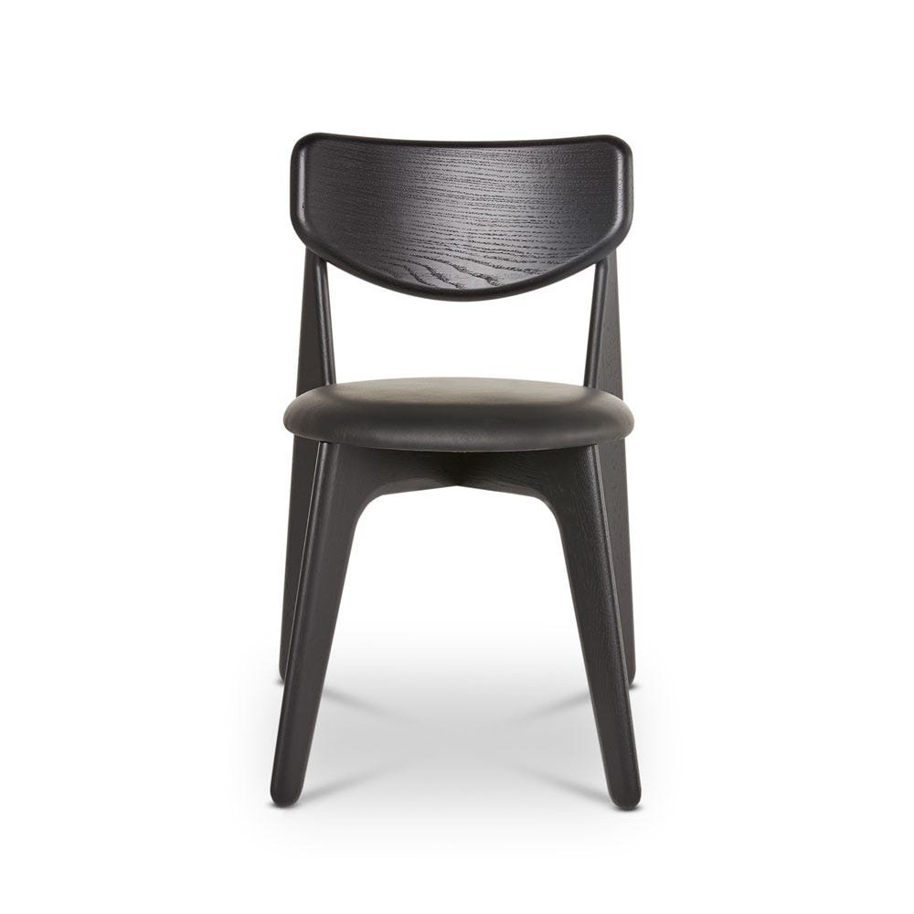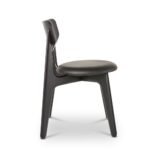 The chair is crafted from finger-jointed solid oak sourced from sustainably managed forests. It’s finished with a black lacquer that leaves the wood’s natural grain exposed.