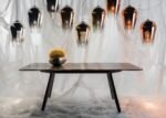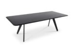 The contemporary form of the Slab Dining Table is supported by intentionally splayed legs.