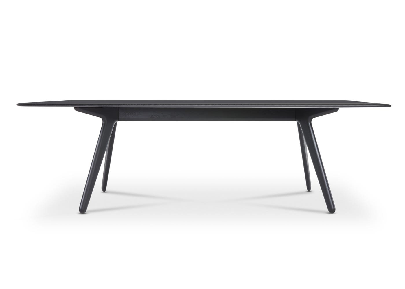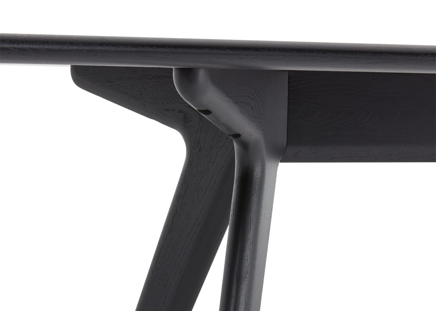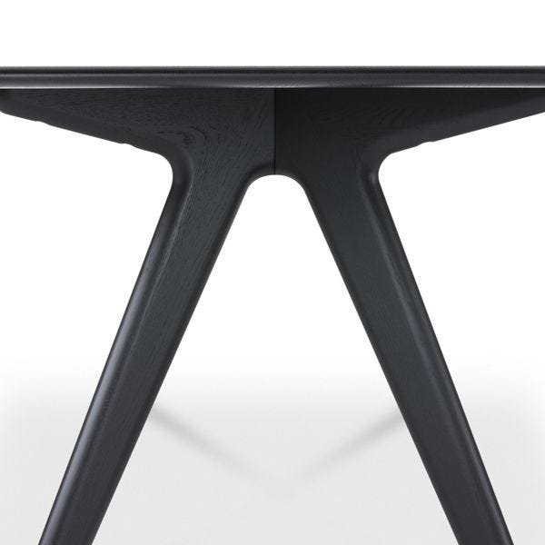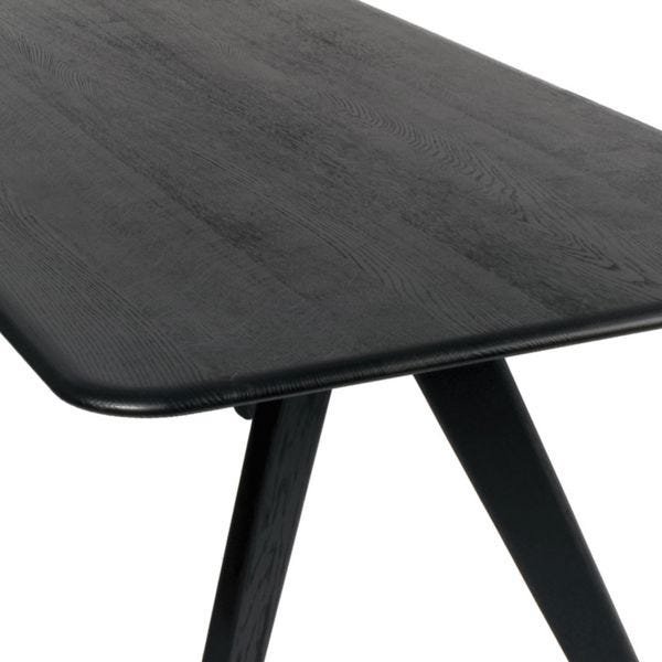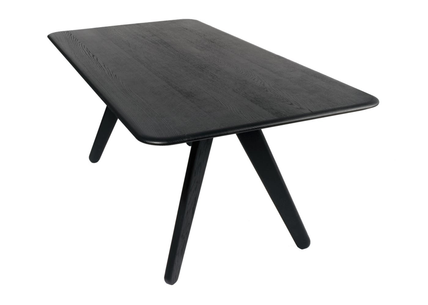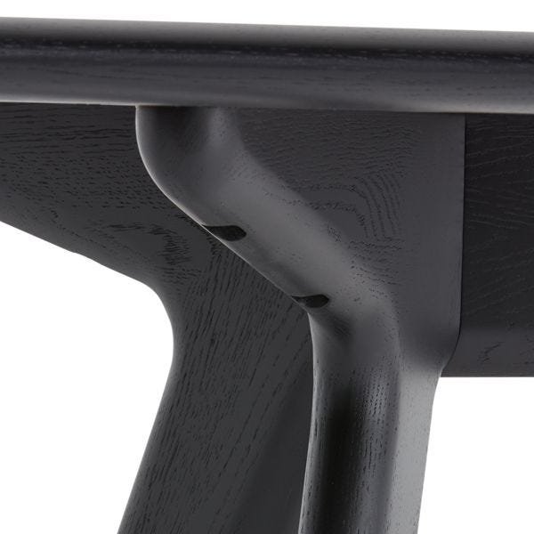 Solid oak finished in a black lacquer lends a clean but textured surface to the table.