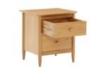 The Teramo bedroom range from Ercol is a series of timeless pieces that combine Shaker-style craftsmanship with elegant woodwork. Crafted from solid and veneered pale oak, this bedside cabinet features two spacious drawers for storage, each finished with double-chamfered oval handles. Tapered turned legs and gently curved edges complete the design, creating a defined silhouette that sits well in both modern and traditional schemes. The cabinet is finished in a clear matt lacquer, making a real feature of the natural oak.