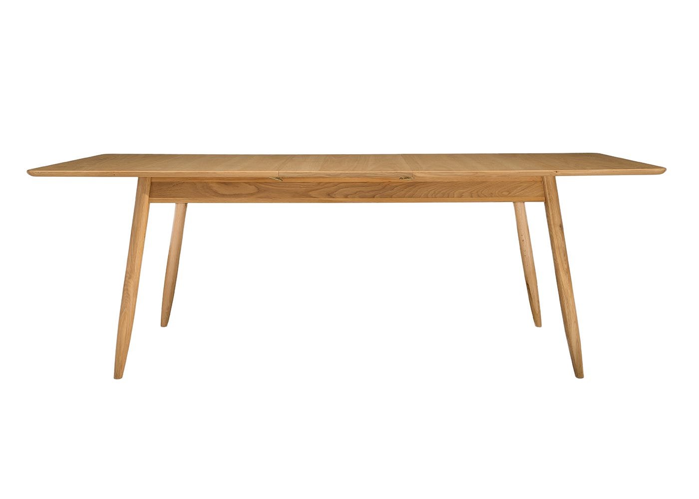 The Teramo dining range from Ercol is a collection of Shaker-inspired pieces that bring understated elegance to dinner times. Crafted from pale oak, this rectangular dinner table opens out to reveal an extension leaf that’s stored inside as a butterfly mechanism. The tabletop is supported by four softly tapered legs that lend a graceful silhouette and a mid-century modern appeal to the design. When extended, the table sits up to eight people comfortably, making it perfect for entertaining friends and family gatherings.