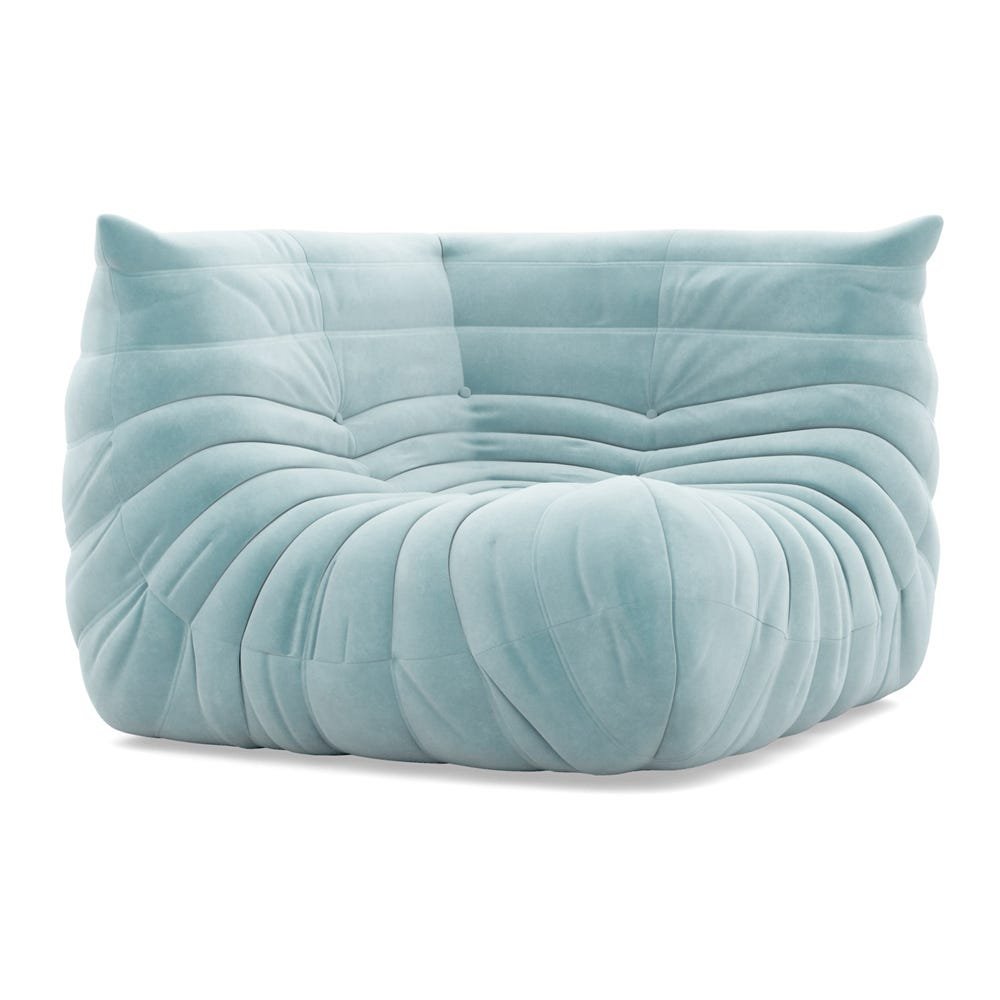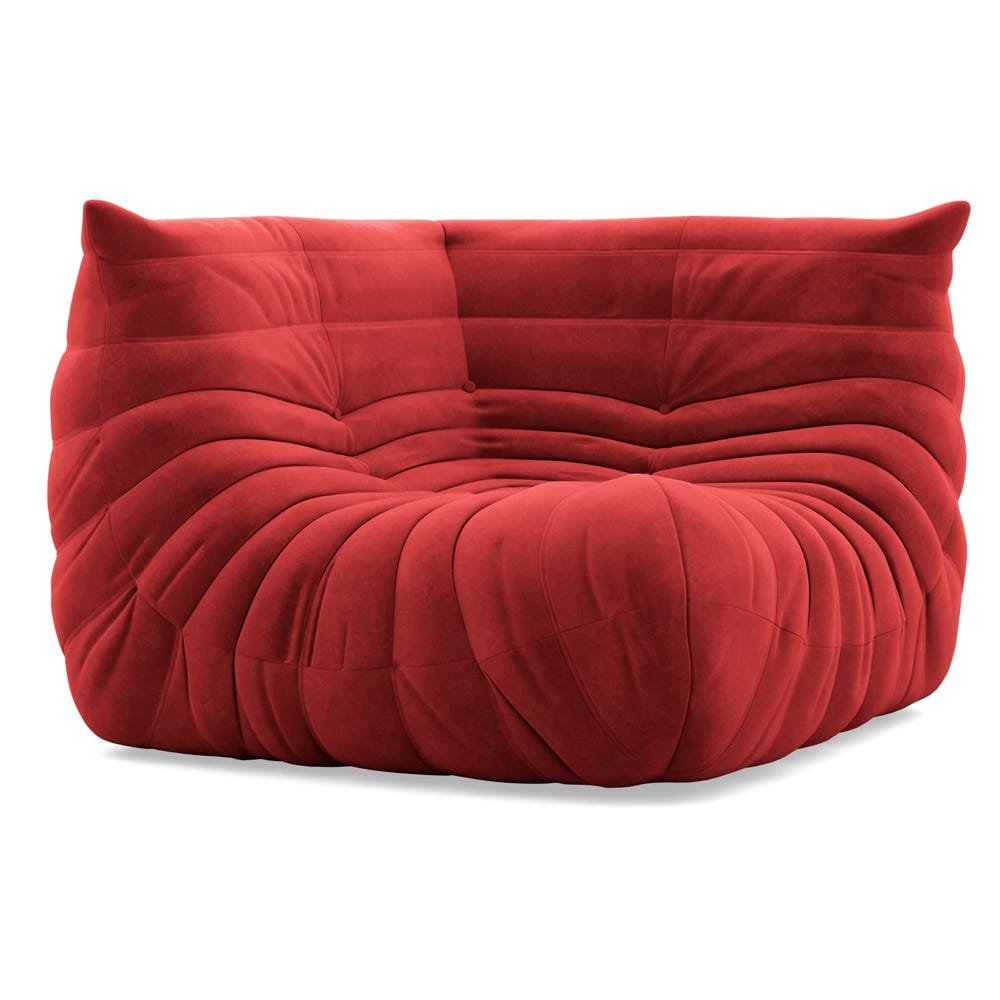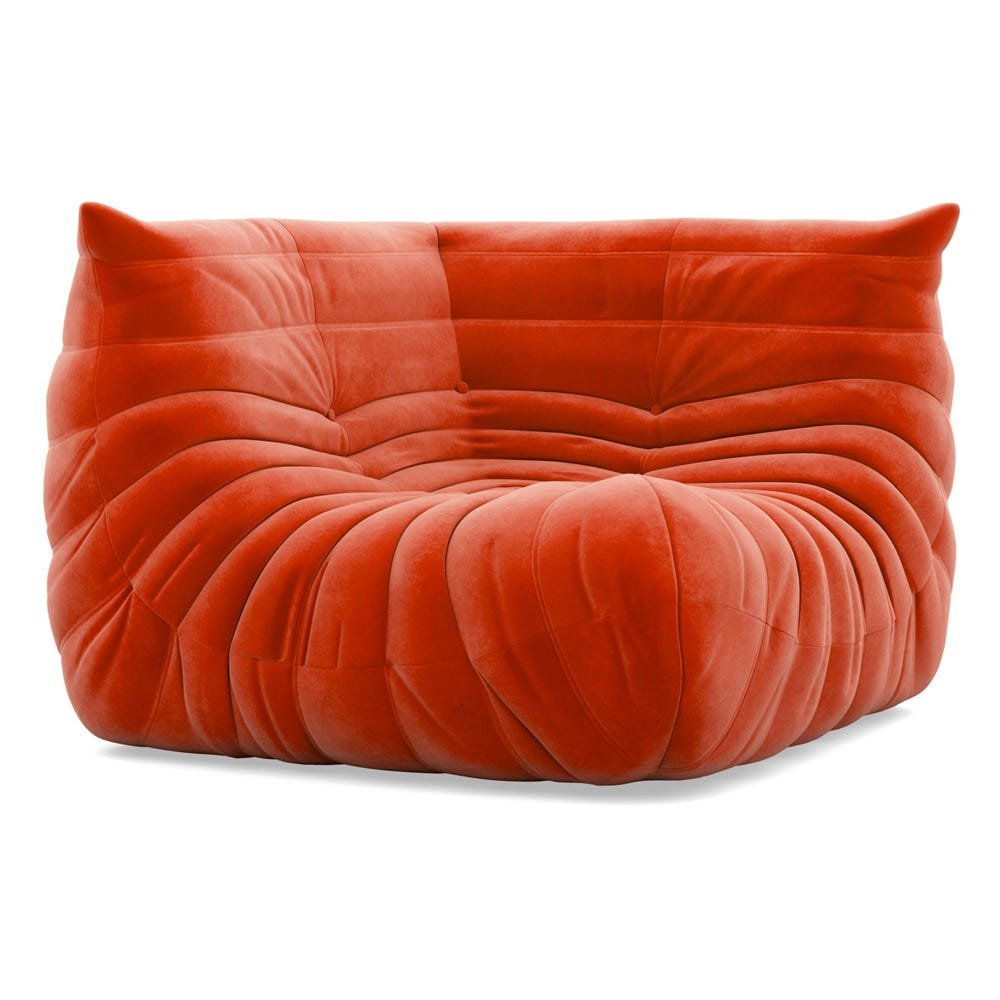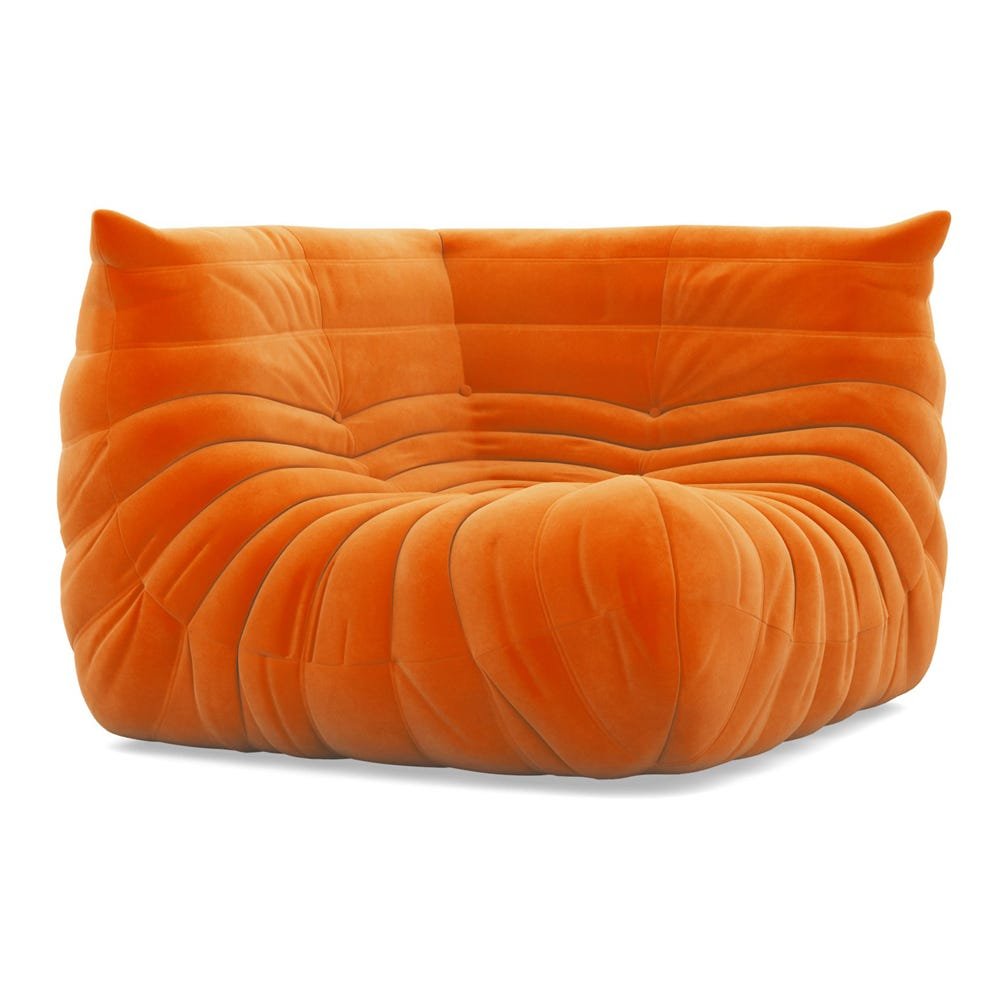 Instantly recognisable from its distinctive shape, the Togo has remained a cult classic for over 40 years. Hand sewn in the small French village of Briord, the curved silhouette of the legendary sofa provides the characteristic pleats of crumpled fabric whilst also making it the ideal seat to lay back and relax into.