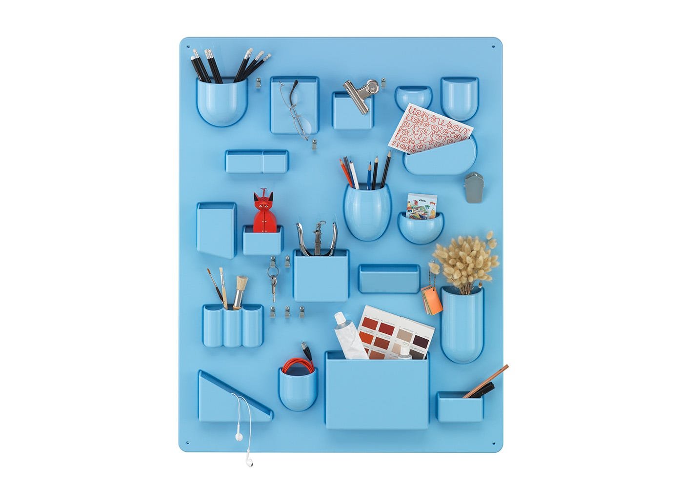 Uten.Silo RE is a storage system for use on the wall. Designed with containers of different shapes and sizes, metal hooks and clips, it brings order to offices, kitchens, workshops, bathrooms and children’s rooms. Uten.Silo RE is available in the original size from 1969 – Uten.Silo RE I – as well as in the smaller version issued in 1970 – Uten.Silo RE II.