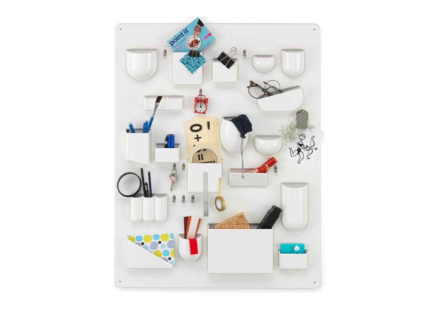 Manufactured entirely from robust recycled materials, featuring a range of different size containers, hooks and clips for stylish organisation.