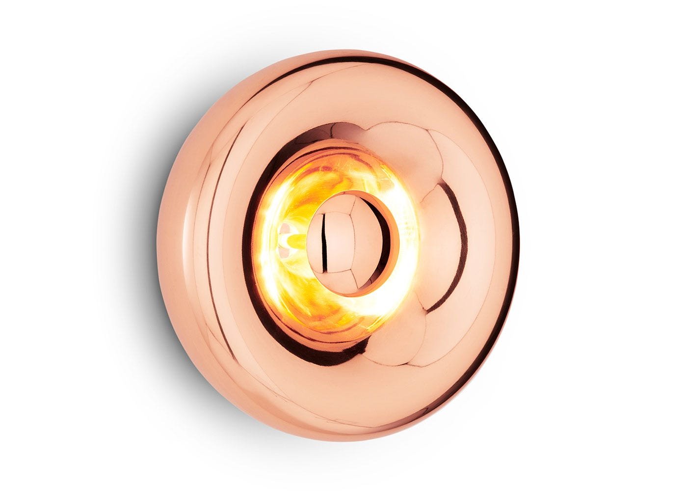 A unique double walled design, the Void is inspired by the metallic lustre of Olympic medals. Using a complex process of pressing, spinning and brazing solid sheets of stainless steel, this wall lights high gloss surface manages to create both a mirrored and translucent finish. Now available with Tom Dixon’s custom-made integrated LED ring, which uses less energy and won’t need replacing for up to 15 years
