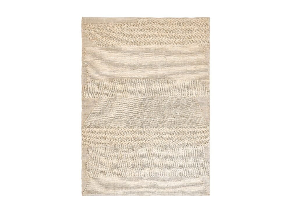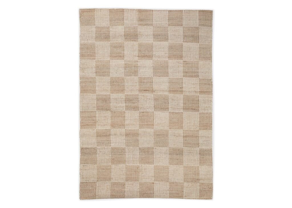The hard-wearing jute is made almost unrecognisably soft through the use of contrasting wool yarns.