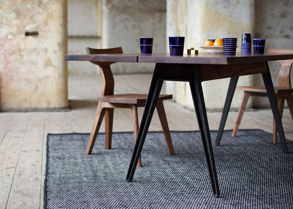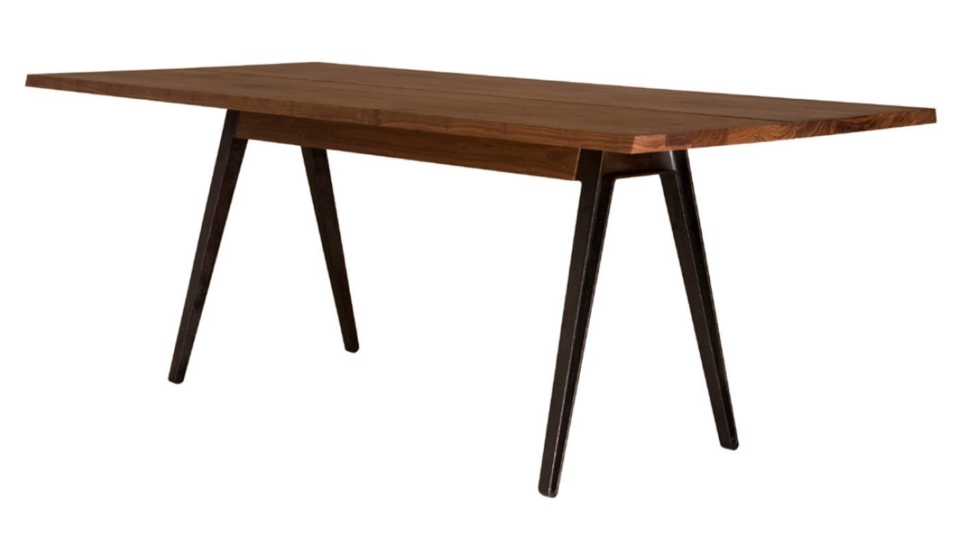 Blending industrial style cast-iron legs with an exquisitely crafted walnut top