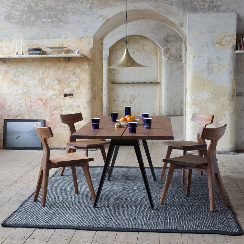 Great design is about bringing together seemingly juxtaposing elements to create one harmonious statement. Studiously designed by Matthew Hilton, the Welles does just that. Blending industrial style cast-iron legs with an exquisitely crafted walnut top, this slender table lends a contemporary ambience to the dining space.